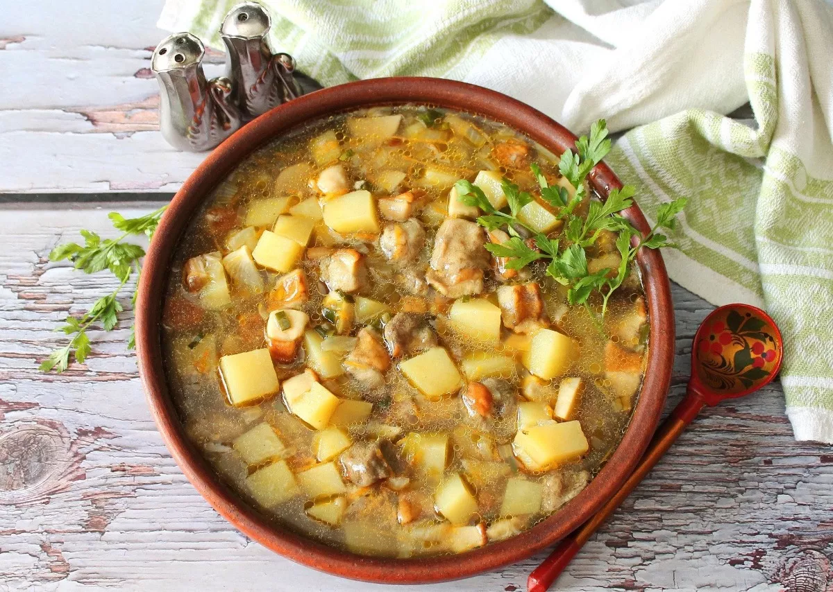 11. Į sriubą sudėkite keptus grybus ir virkite dar 5 minutes.