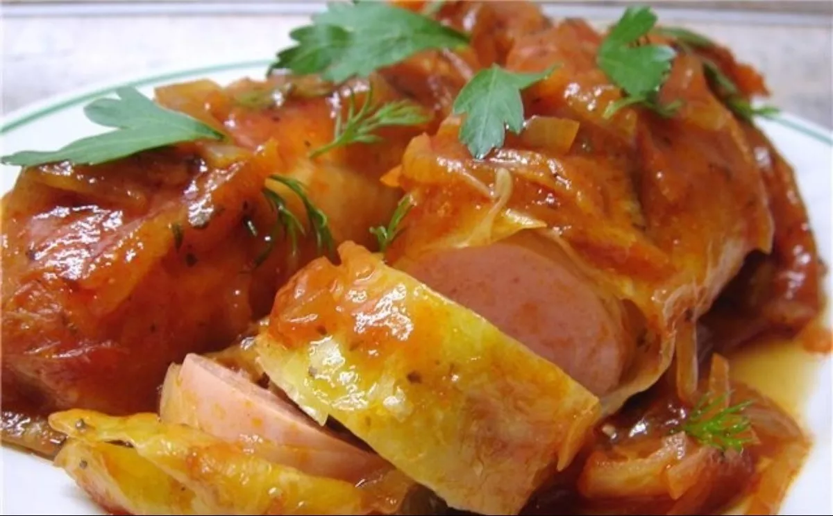 5. Patiekalas iš esmės jau paruoštas, bet galite pasigaminti padažą, panašų į balandėlių. Tam pakepinkite smulkiai supjaustytą svogūną ir tarkuotą morką, įdėkite pomidorų pastos ir įpilkite 100 ml vandens. Užpilkite padažu dešreles kopūstuose ir troškinkite 5–10 minučių.Šaltinis: povar.ruRecepto įvertinimas 5/5 (1 įvertinimai)Ačiū už jūsų įvertinimą!