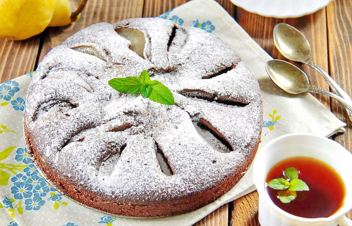 6. Kepkite 180 laipsnių temperatūroje apie 40 minučių. Šokoladinis kriaušių pyragas paruoštas.