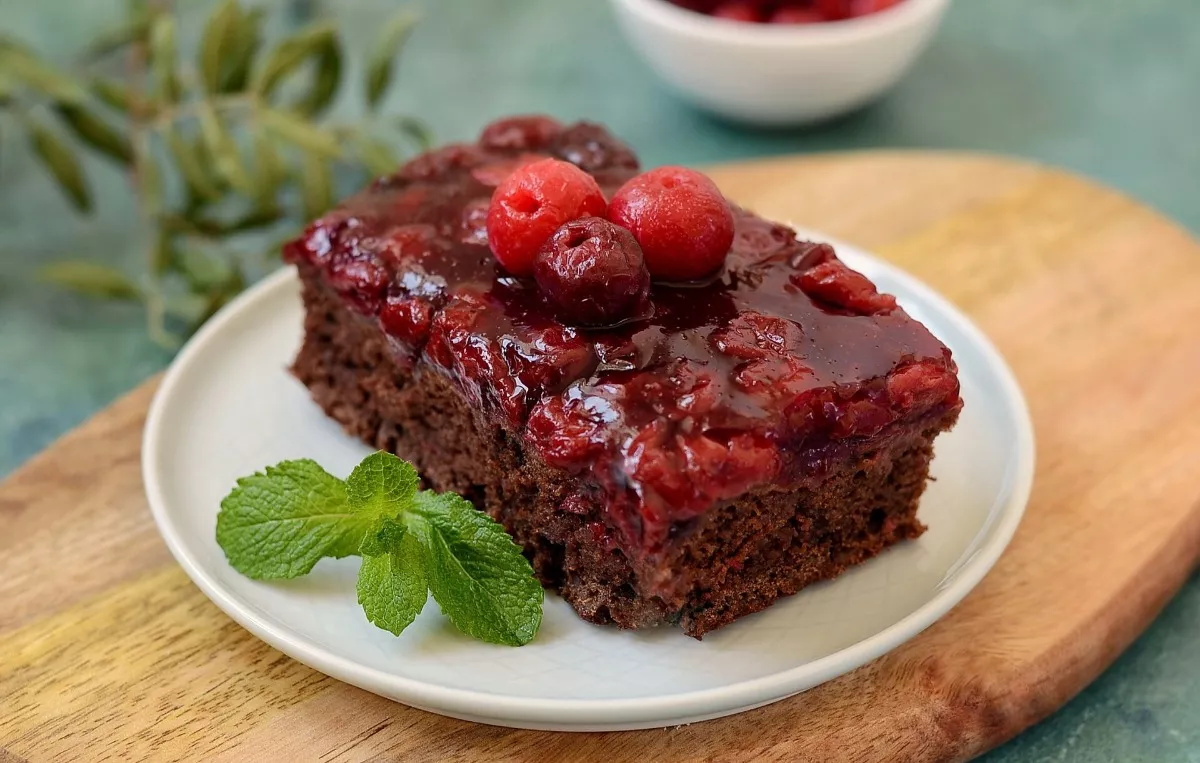 Šokoladinis pyragas su šaldytomis vyšniomis
